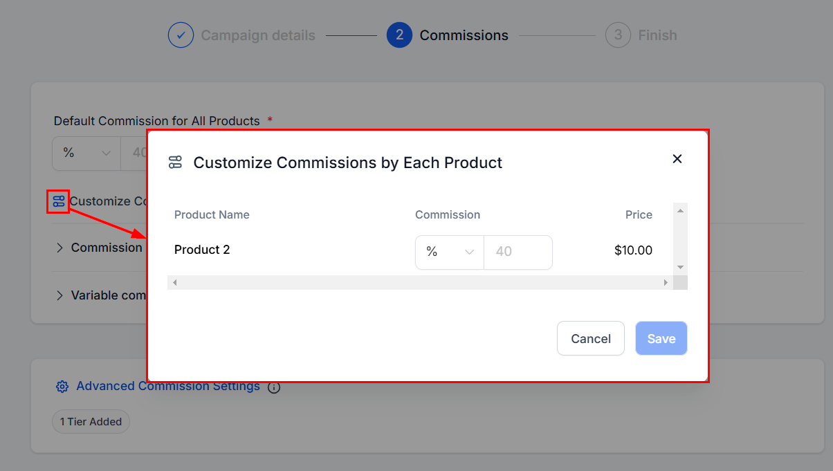 If needed, set up Multiple Tiers under advanced commission settings to further customize the commission structure.