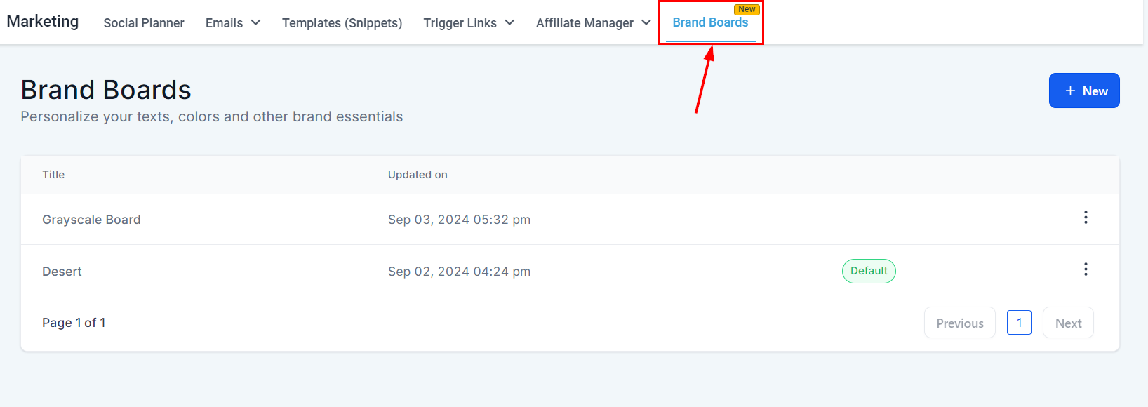 Navigate to Marketing > Brand Boards within your account.