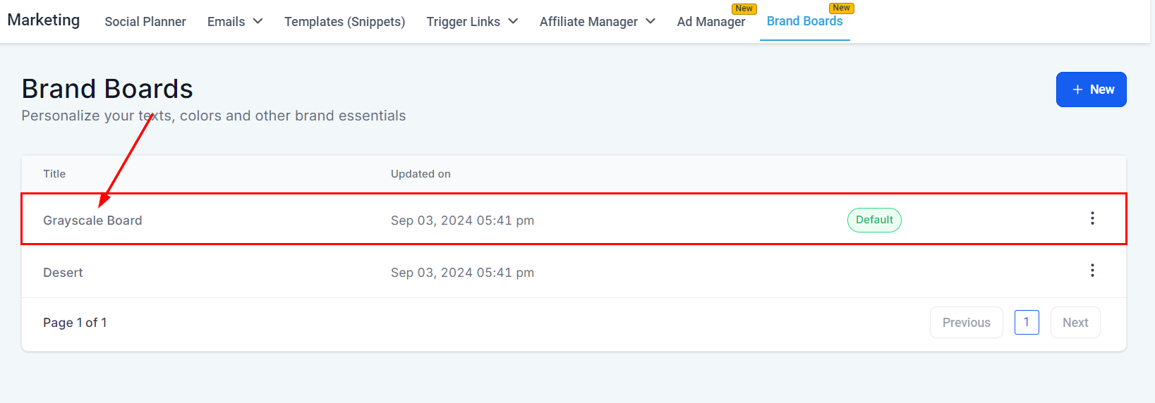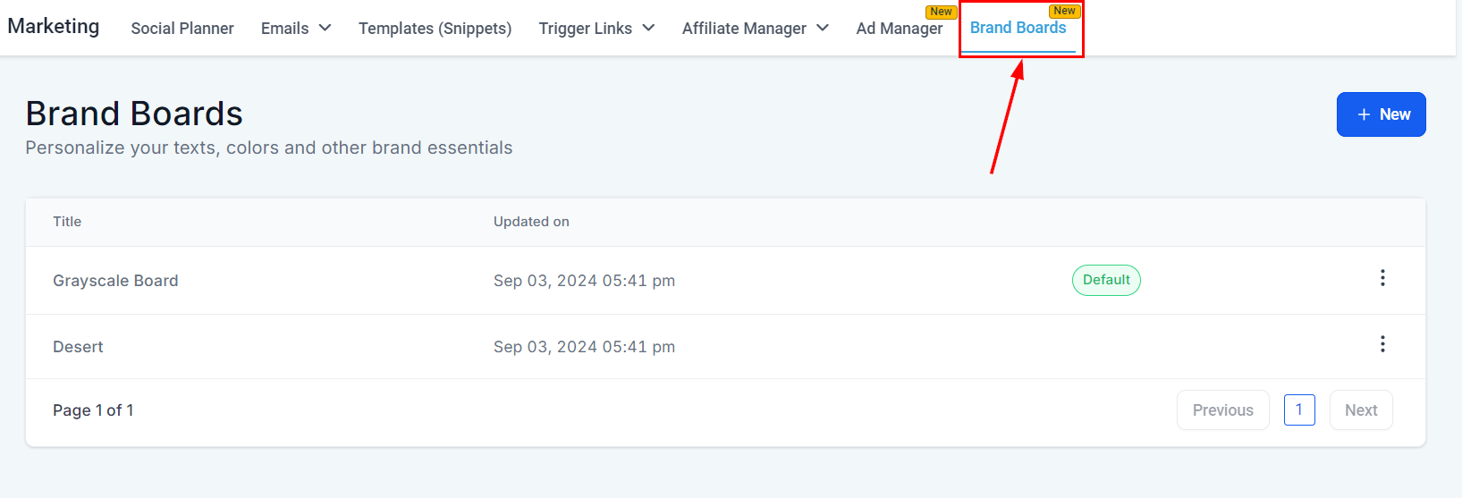 Option 1: Go to the Marketing section in your platform dashboard and select Brand Boards.
