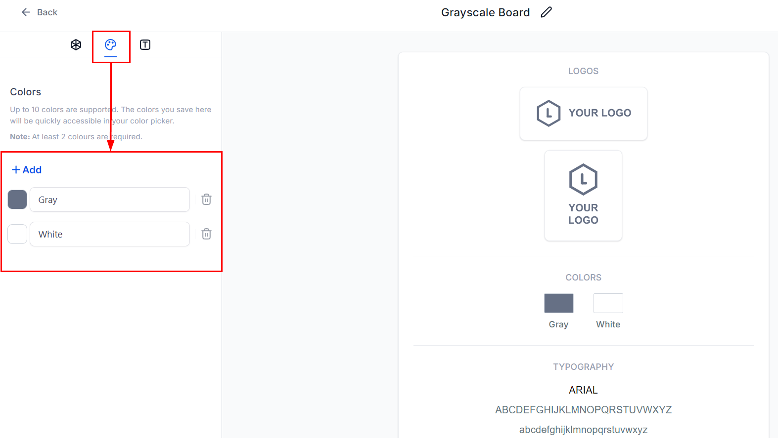 📌Note: You must have between 2 to 10 colors for each brand board.