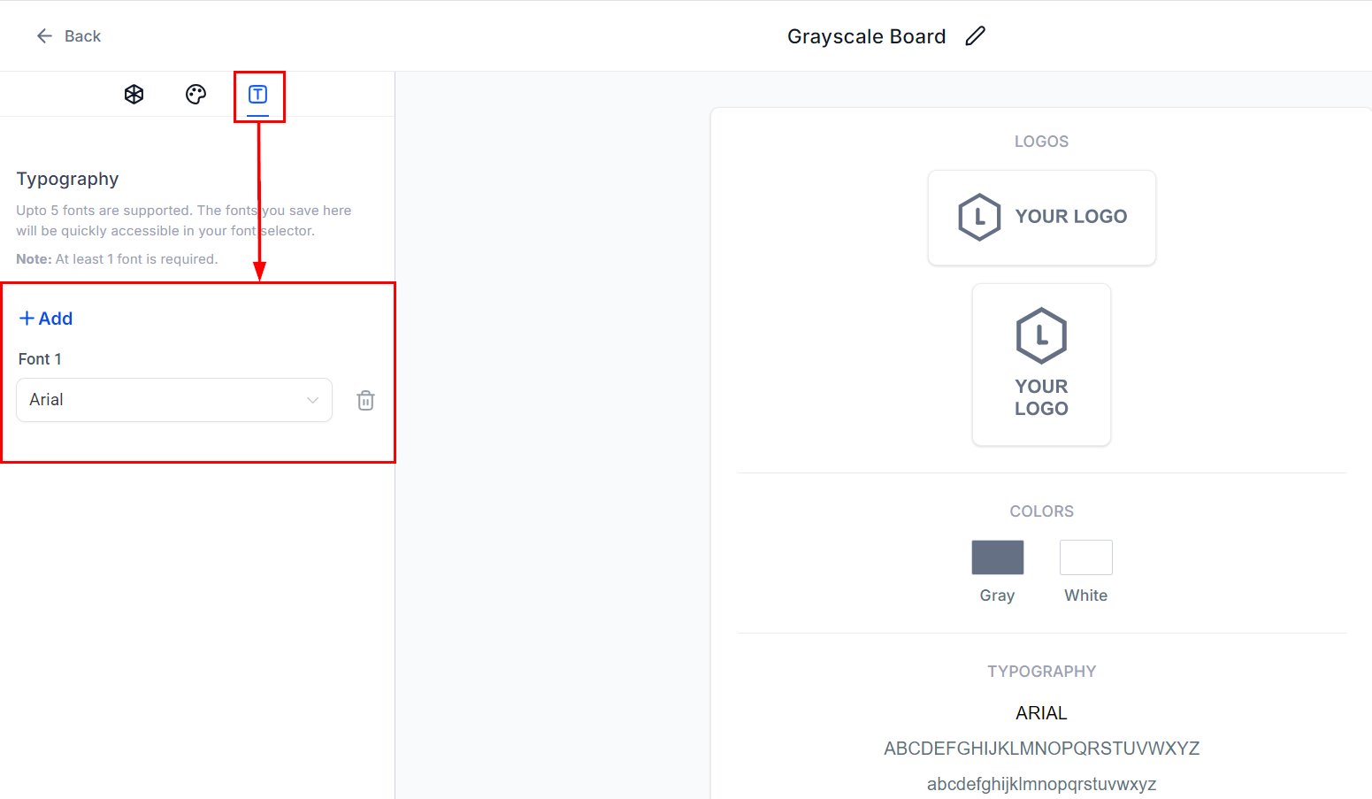 📌Note: You must have between 1 to 5 fonts for each brand board.