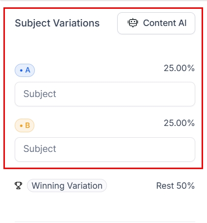 If you choose to test using subject variations, enter the various subject lines in the provided fields.
