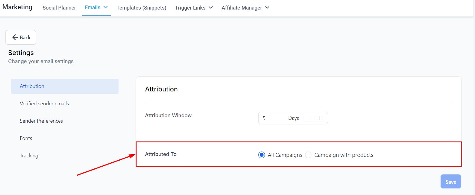Select whether to attribute results to all campaigns or to restrict attribution solely to campaigns associated with products. This choice allows for a more targeted analysis, ensuring that the attribution aligns with your specific campaign objectives.