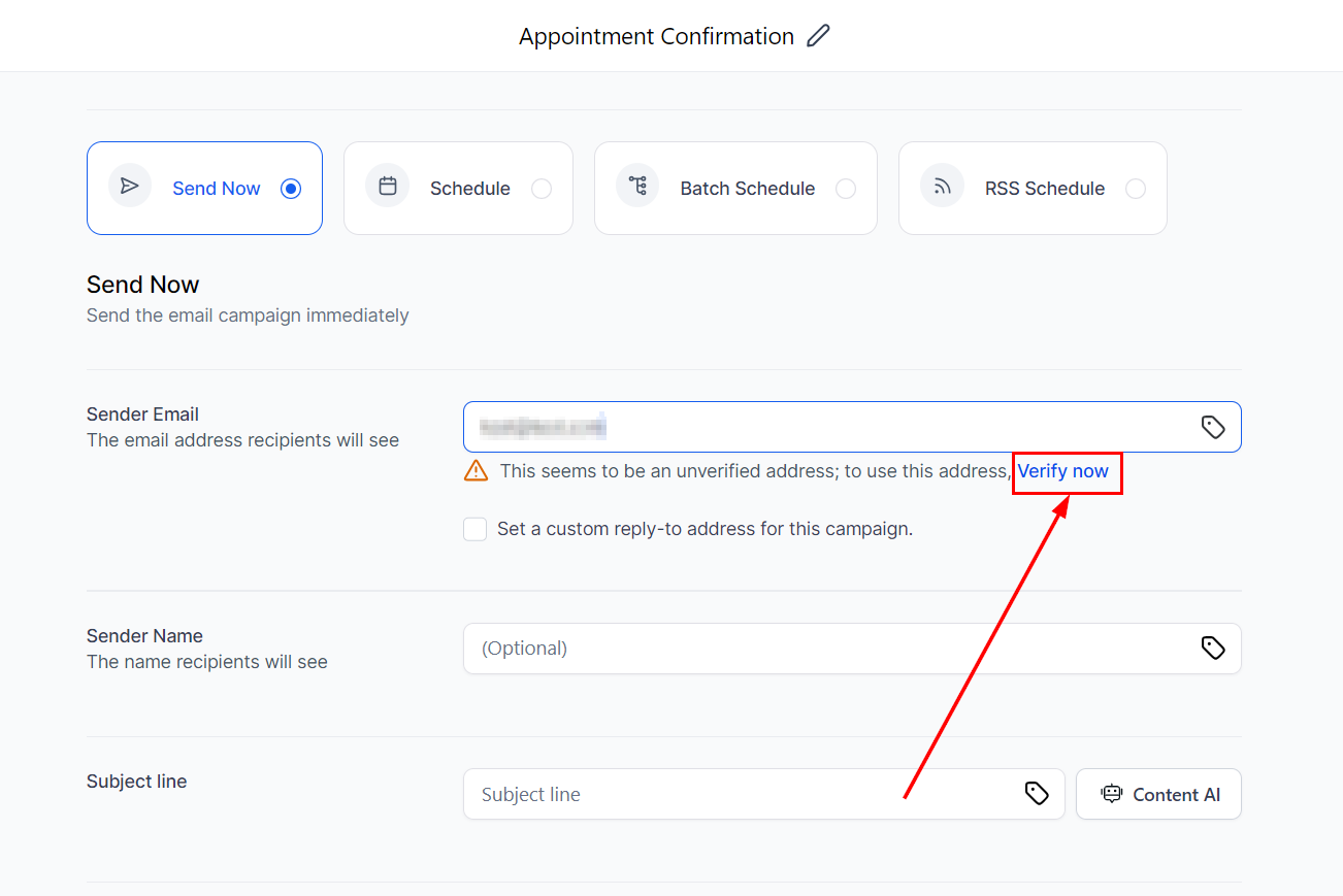 Once verified, your email address is authenticated and ready for use in future campaigns.