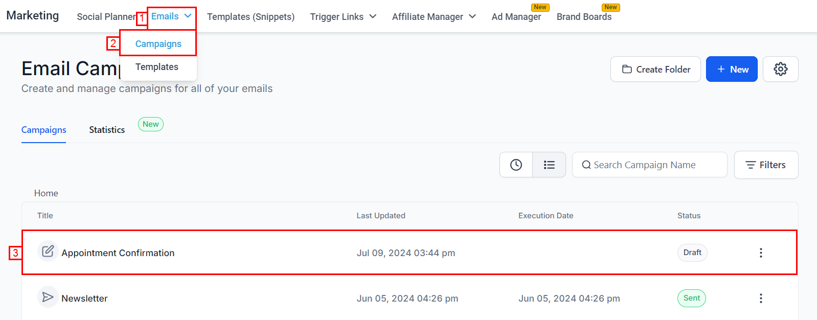 Navigate to the Email Marketing section and create a new campaign or select an existing campaign.