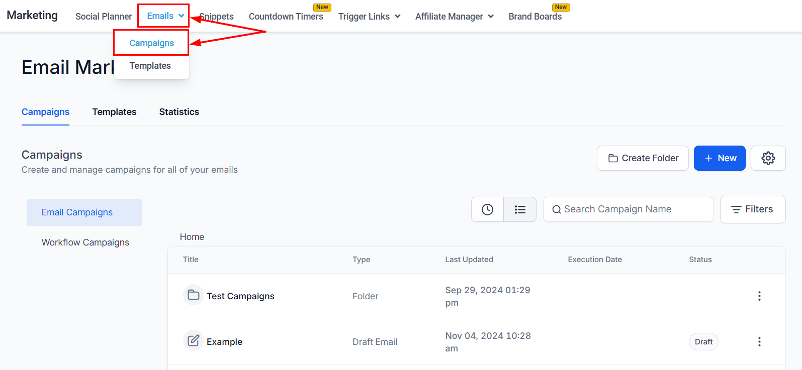 Here. you can create a new campaign or click a drafted campaign from your list to access its editor.