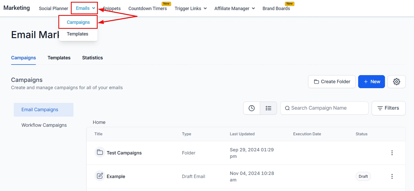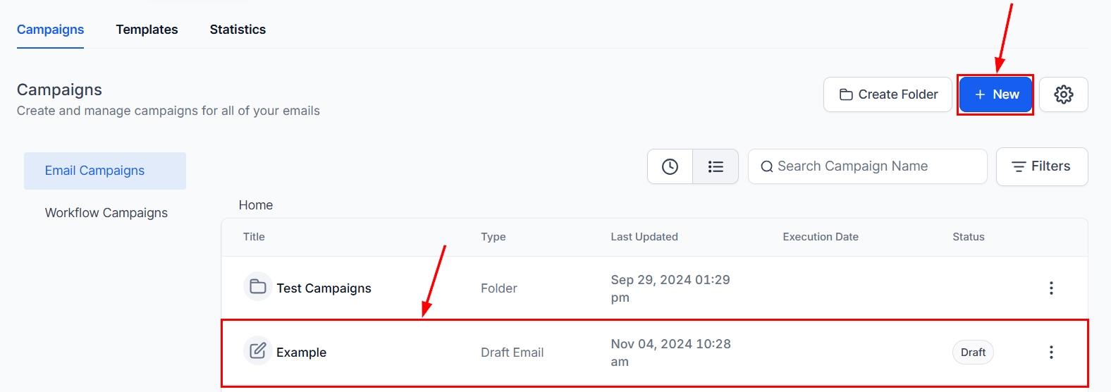 Navigate to the Email Campaigns section of your platform to begin.