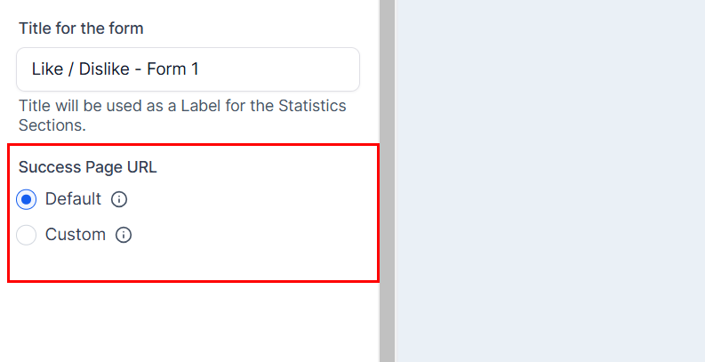 📌 Note: For user-built forms, the existing On Submit configurations will remain in effect and the Success Page URL field will not be displayed.
