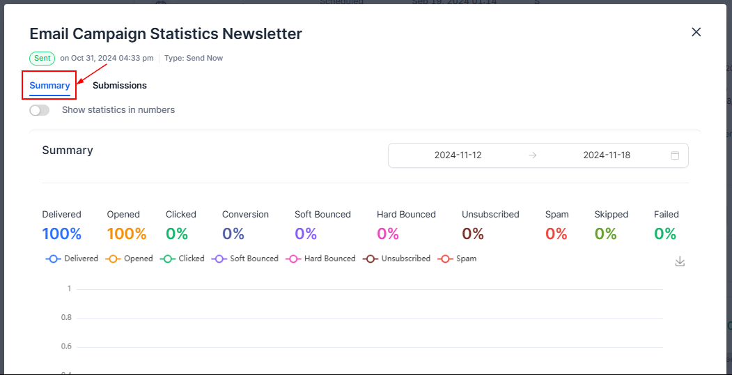 The summary section shows the key email performance metrics, as the concern of your email campaign.