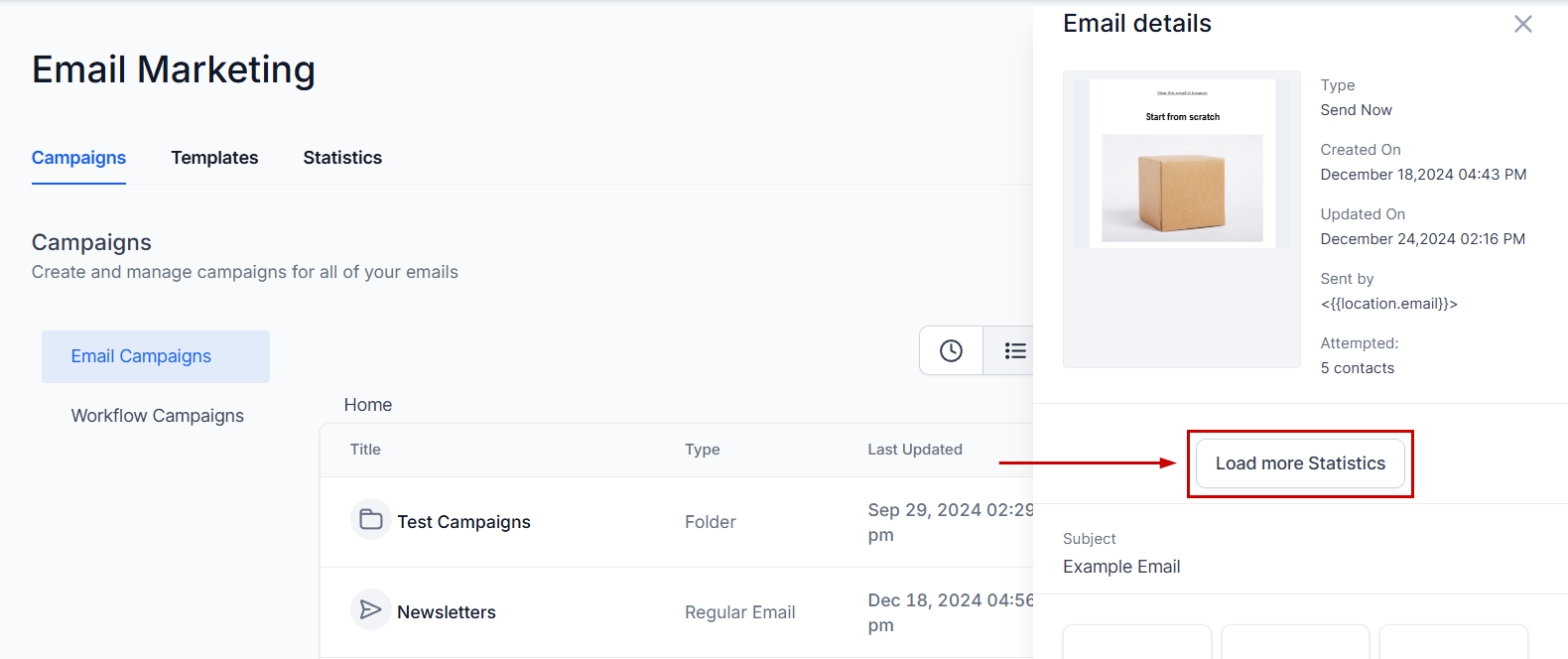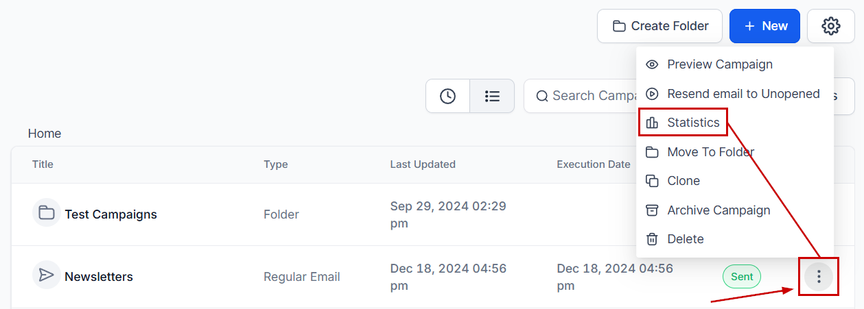Click the three dots next to the campaign then select "Statistics" within your chosen campaign.
