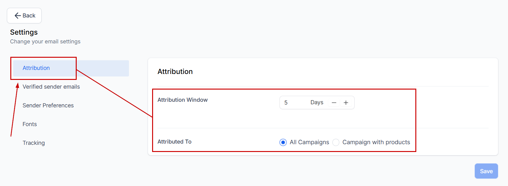Navigate to the settings page to adjust this window. This customization allows you to define the period during which a campaign's influence on conversions is considered. change sc