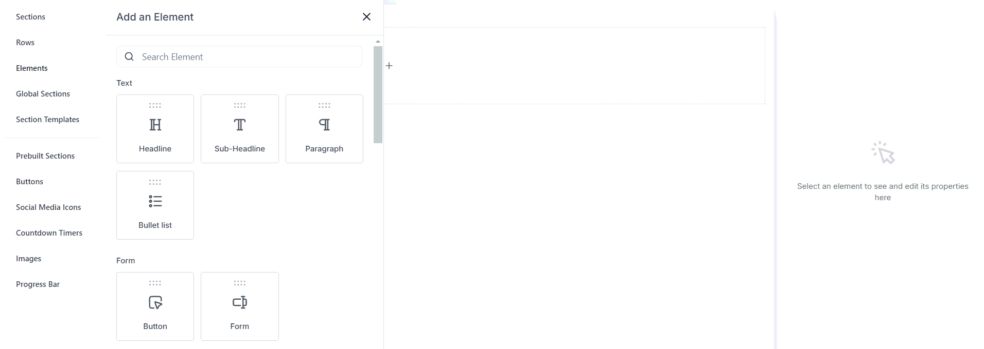From the elements list, select the preferred countdown timer and drag and drop it into the page builder.