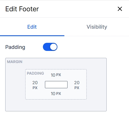 You can adjust the padding around your footer to ensure accurate spacing within your email template by toggling on padding and adjusting the top, bottom, left, and right padding.