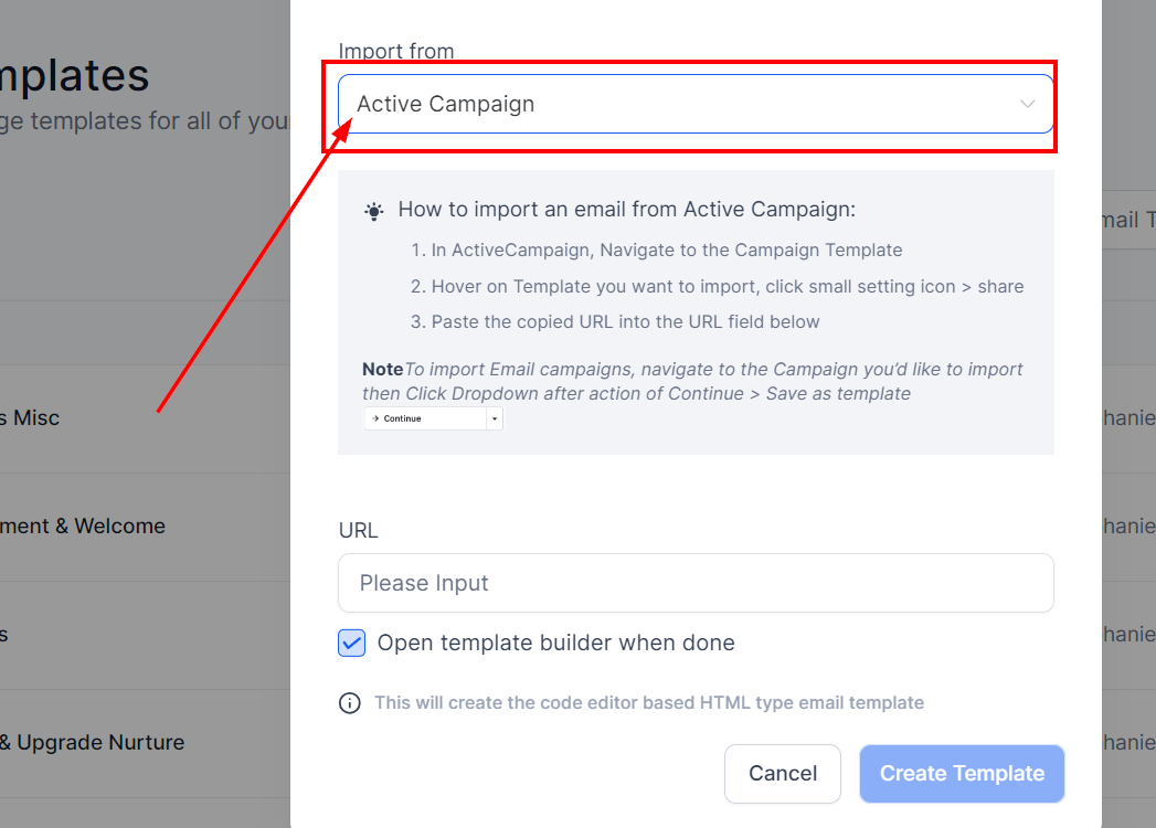 Importing Templates from Active Campaign