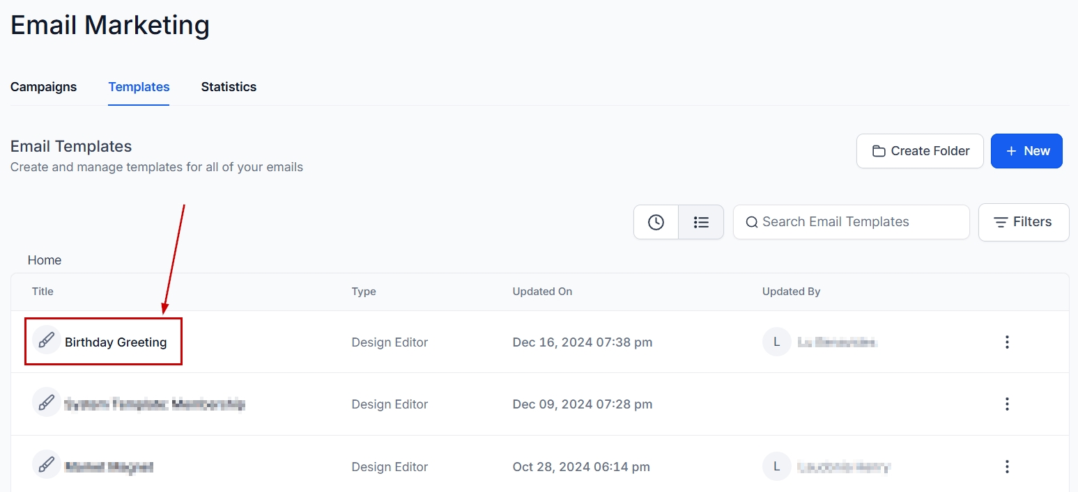 To begin, select the Templates option inside the Emails tab of the Marketing section.