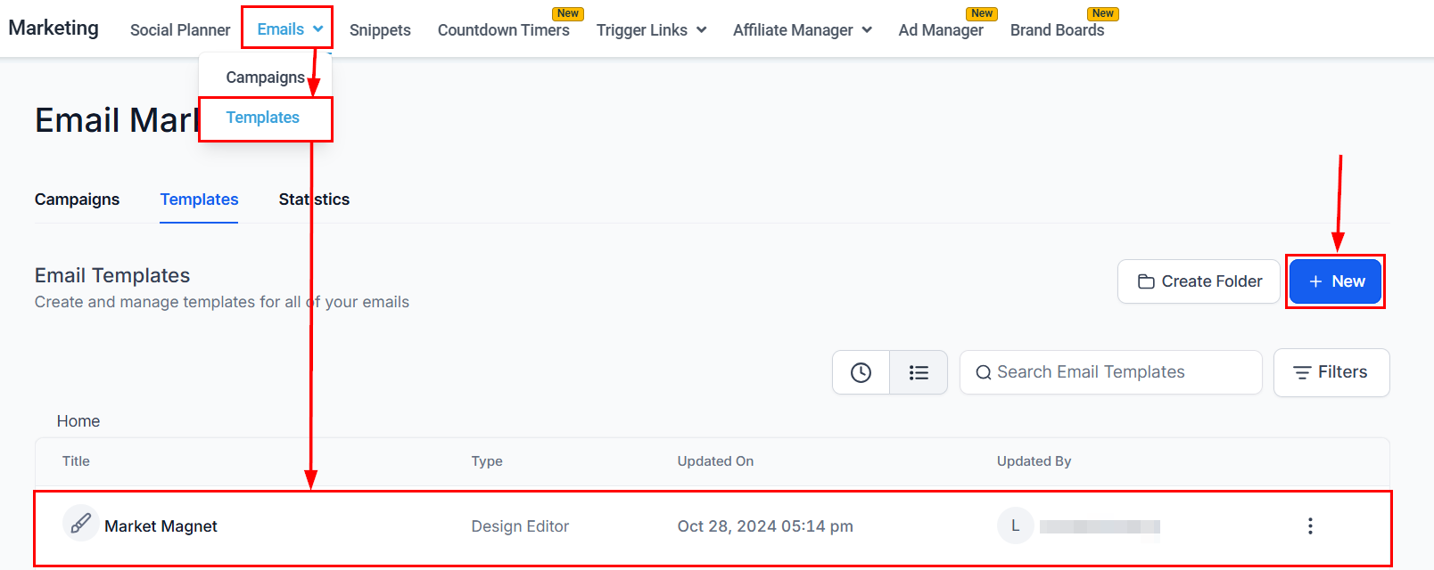Navigate to Marketing > Email Campaigns or Templates, then create or edit your email campaign or template.