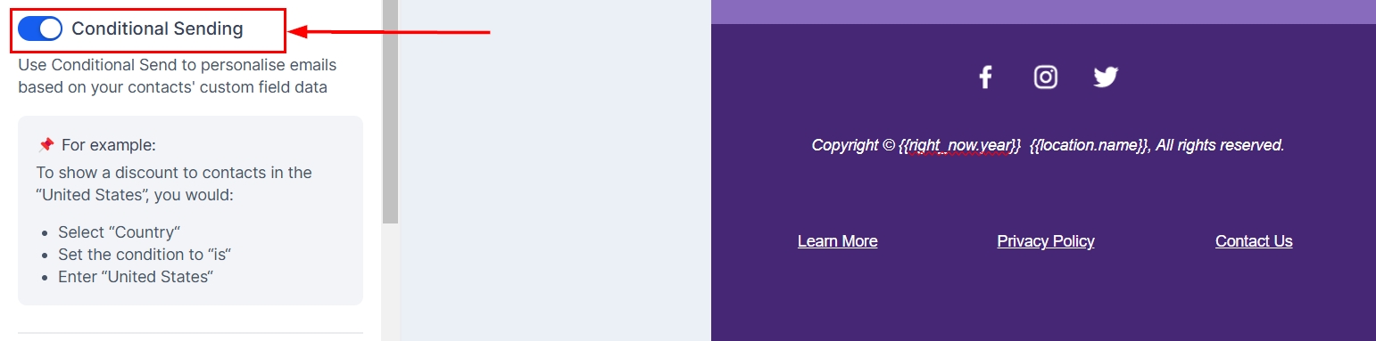 Enable the Conditional Sending toggle.