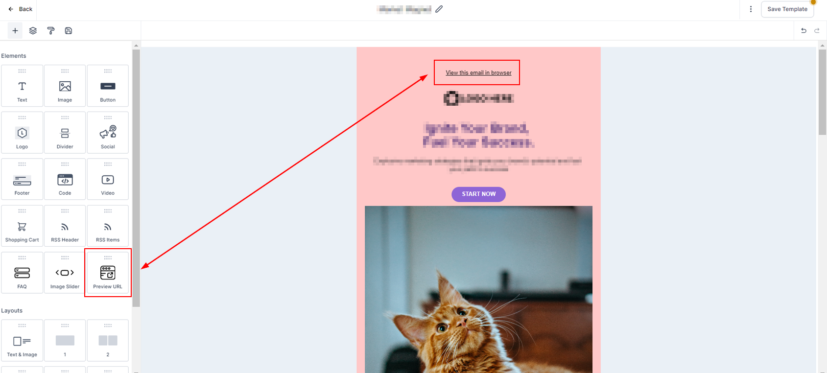 For any marketing templates or already created emails, you can add the preview from the Elements menu.