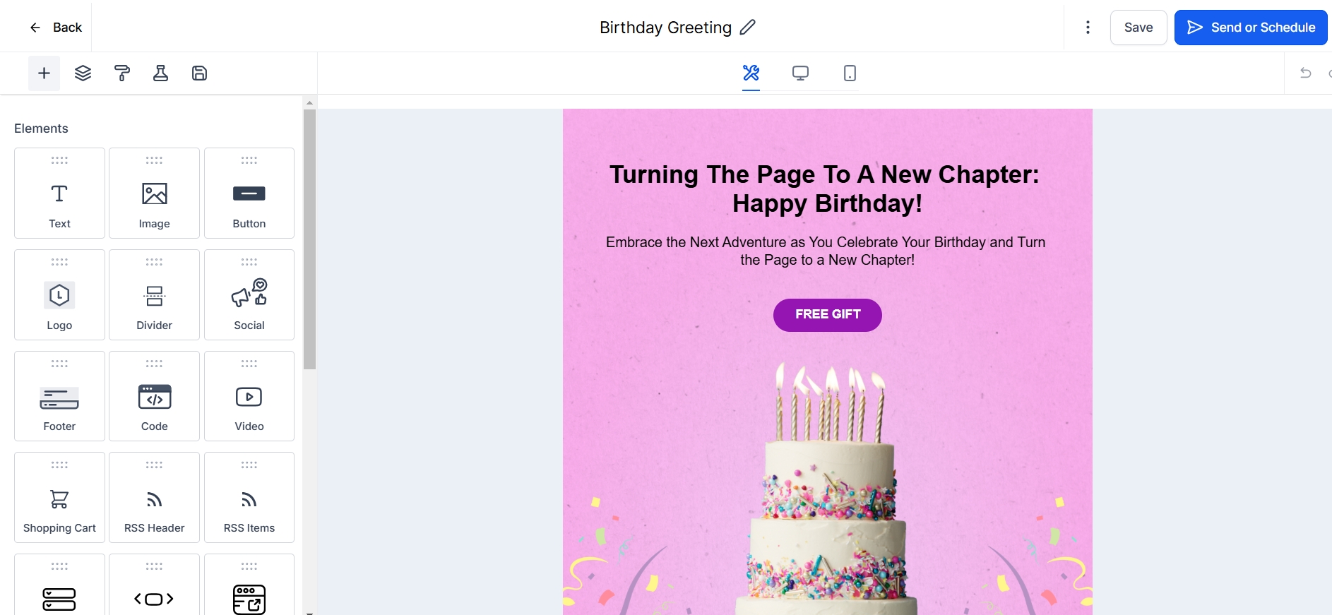 A campaign is the actual email message you design and send to specific contacts or a smart list. After selecting a template, you can design your campaign within the layout using the Email Builder, where you can easily duplicate, delete, and rearrange various element blocks. After you are satisfied with the design, send or schedule the emails to your contacts.
