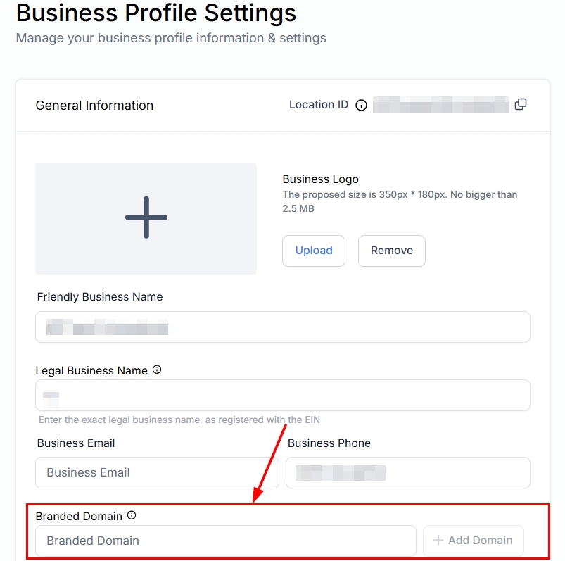 For example, you can set up a Branded Domain within the Business Profile Settings of your account to ensure that system notifications are sent from your own domain.