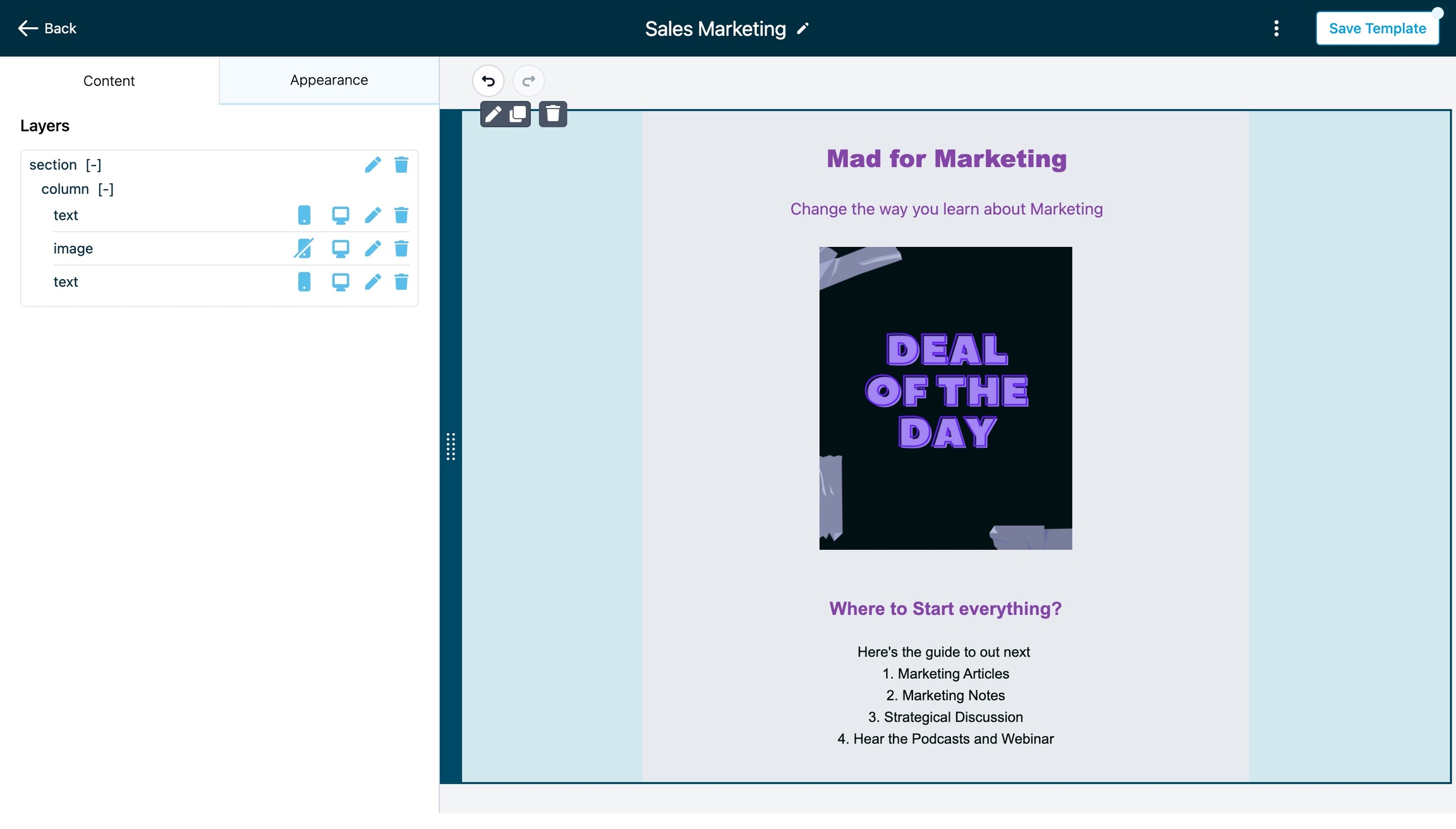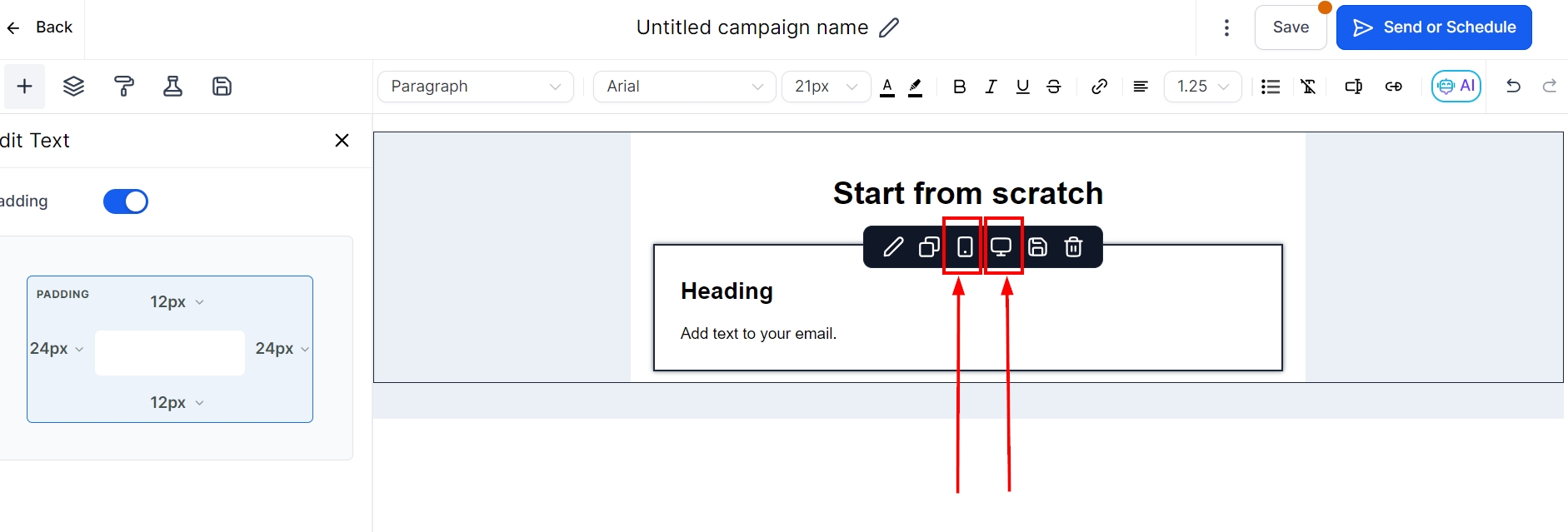 Start by either creating a new email template or opening an existing email campaign that you want to optimize for mobile and desktop views.