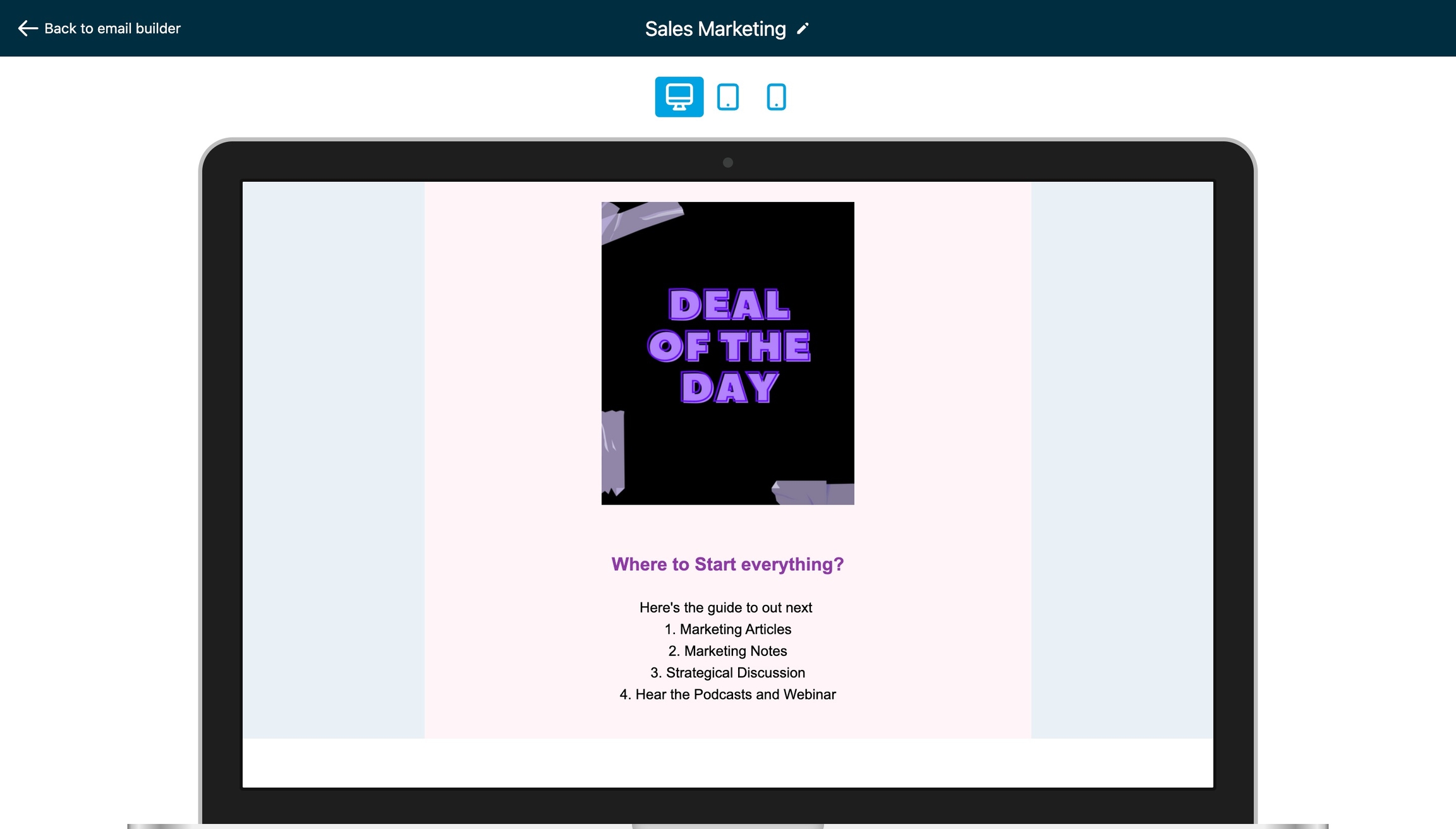 Access the Email Editor: Go to the email editor view where you can make changes to the email's content and layout. Depending on the email marketing platform you're using, this interface may vary.
