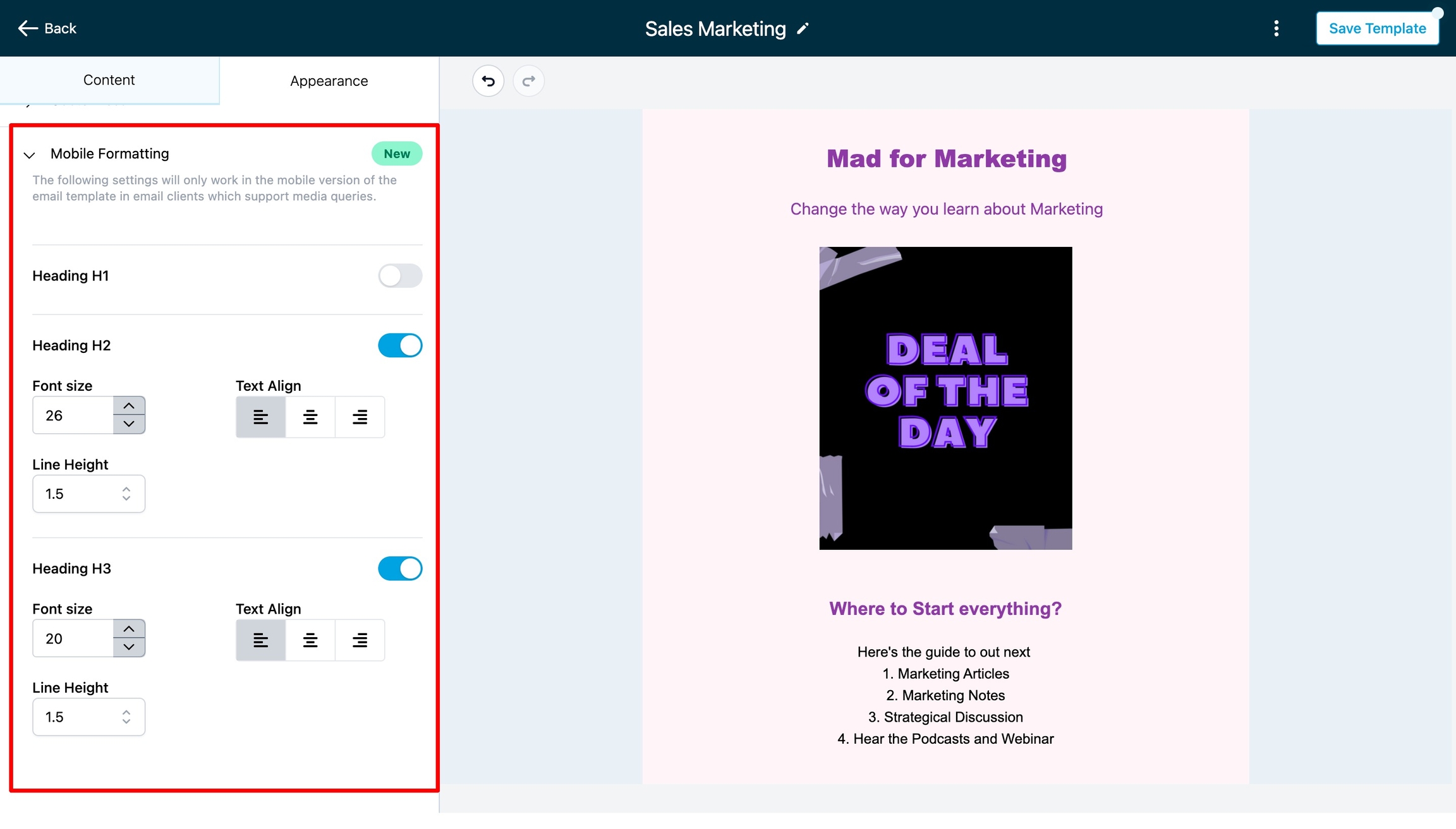 Inside the "Mobile Formatting" section, you'll find various options to change the look of your email on mobile screens. You can adjust things like font size, font style, and alignment. Depending on your email platform, you might see different options. For example, you can change the size of the text or the appearance of buttons for mobile devices.
