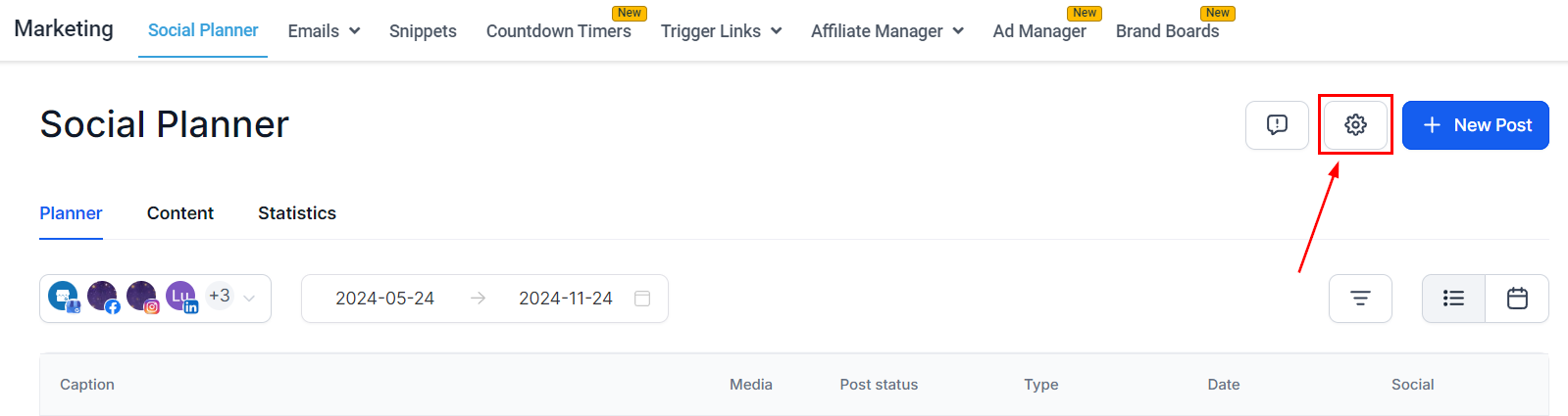 If you are already connected to other social media accounts, click the Gear icon to start the setup.