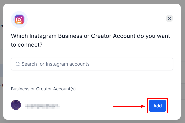 Select the Instagram Profile(s) you'd like to connect by clicking Add. Once connected you'll be able to check the account and schedule posts.
