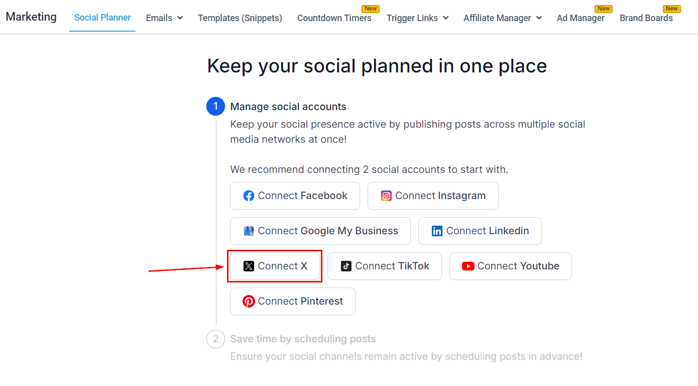 Connecting your X (formerly Twitter) account to the social planner helps you engage and interact with your audience, by adding your accounts ensuring you never miss an opportunity. It allows you to tweet, like, and retweet from the comfort of your CRM.
