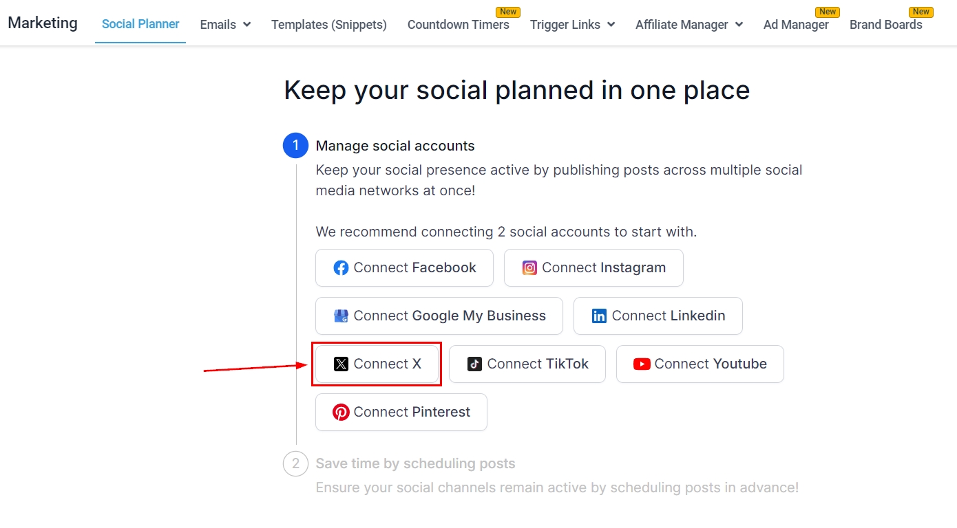 Connecting your X (formerly Twitter) account to the social planner helps you engage and interact with your audience, by adding your accounts ensuring you never miss an opportunity. It allows you to tweet, like, and retweet from the comfort of your CRM.