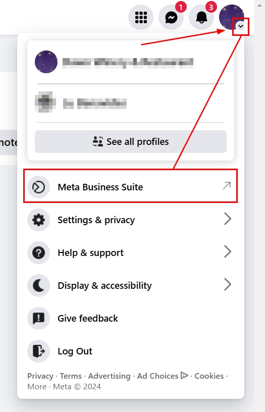 Sign in to your Facebook account and switch to the Meta Business Suite.