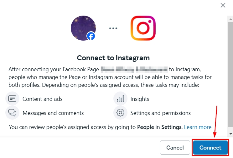 Click Connect Instagram to link the pages.