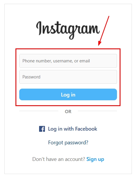 Enter your Instagram account credentials (username and password) and log in.