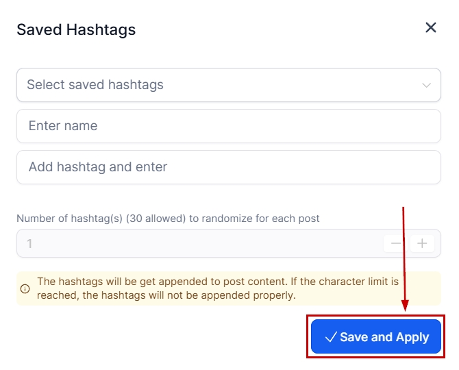 Select the Hashtags group's name from the drop-down menu then click apply to add the hashtags to your post.