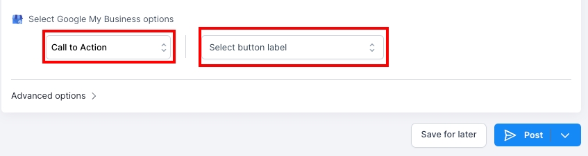 If you select Google Business Profile (formerly known as Google My Business), you can choose between Call to Action, Event, or Offer options. Additionally, you can select the appropriate button label.