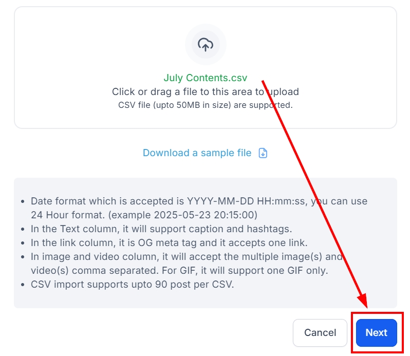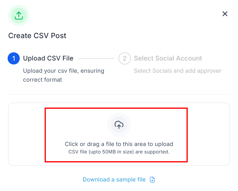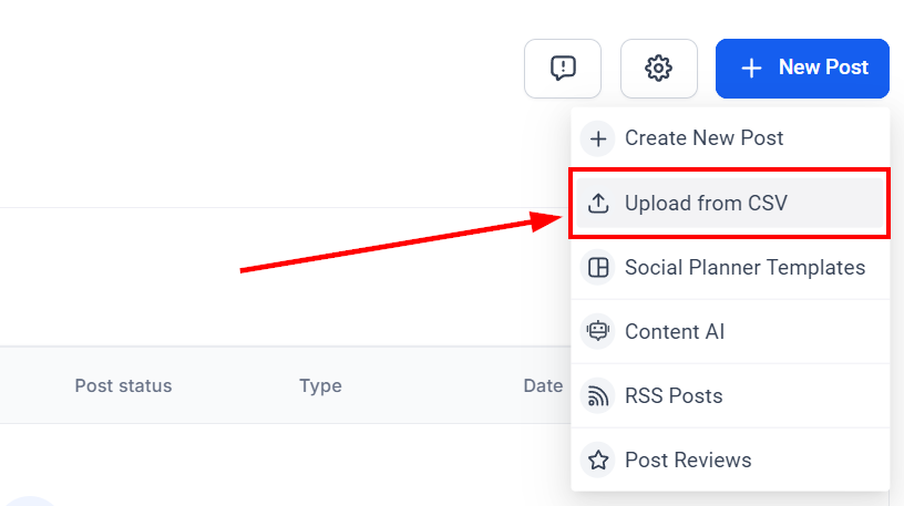 Click on the "New Post" button and select the "Upload from CSV" button to direct you to the upload page.