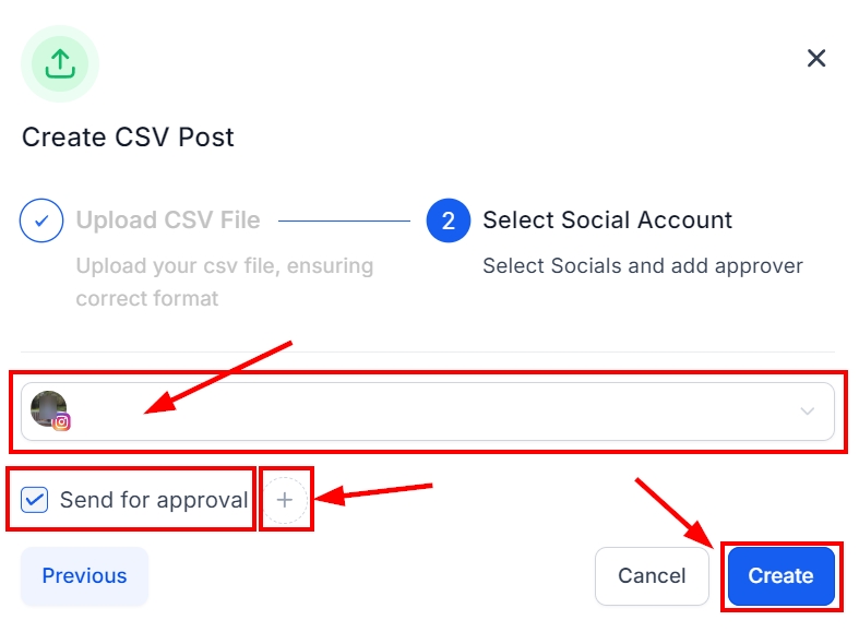 Once the user adds the CSV file and Selects the Socials, there will be an option to Select an Approver.