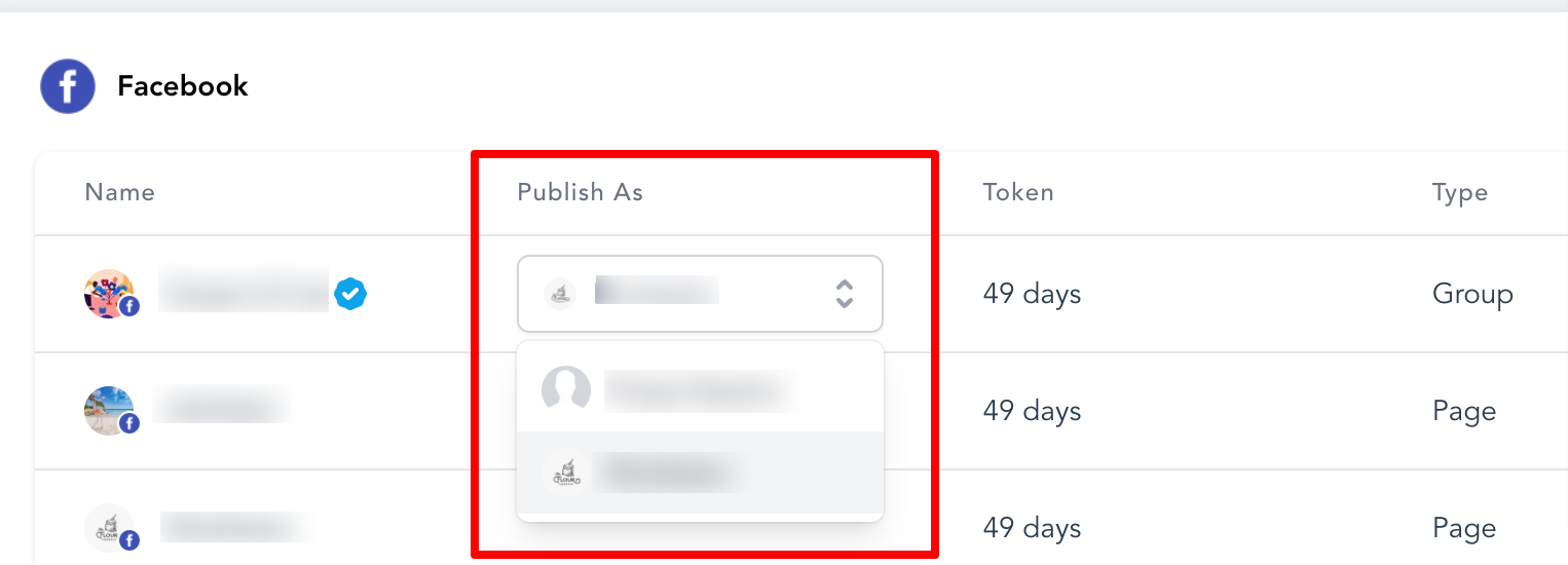 Select Your Page: Pick the Page you want to use as the Publisher from the drop-down list. This means that any posts you schedule through Social Planner will be published on the Facebook Group as your chosen Page.