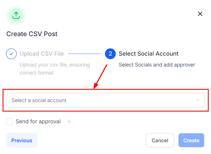 Submit the posts contained in the CSV file for review by a designated approver before they are scheduled for publication by clicking the checkbox and selecting the relevant persons.