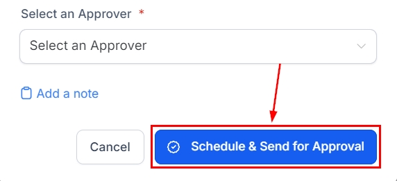 Create your post as normal, including all your captions, media, etc. Click the downwards pointing arrow to schedule the post by selecting “Send Post for Approval”