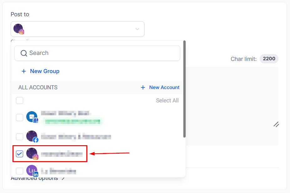 Scroll down to Instagram options, open the drop-down menu then select Reel as the post type.