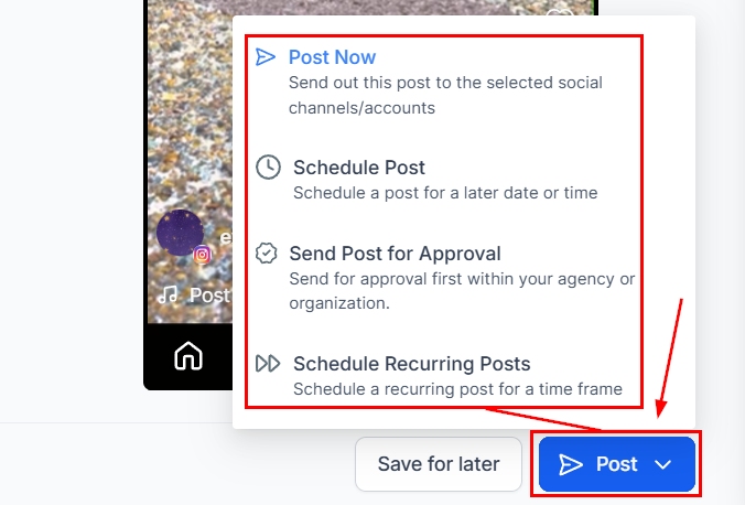 Once you are happy with your post click on the Post button, it will give you the options for the next step with the post. These will be:
