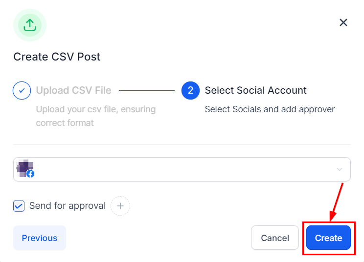 Submit the posts contained in the CSV file for review by a designated approver before they are scheduled for publication by clicking the checkbox and selecting the relevant persons.