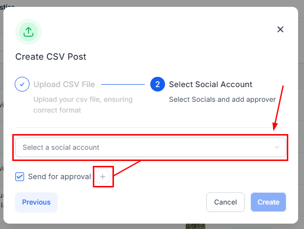 Then click Next to select the socials to select the pages you want to post to. As well as selecting the Approver if needed.
