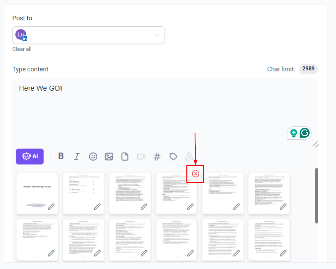 Add your caption and hashtags, or click the AI tool icon for assistance. Enhance your post with bold or italic text, images, videos, or carousel content.