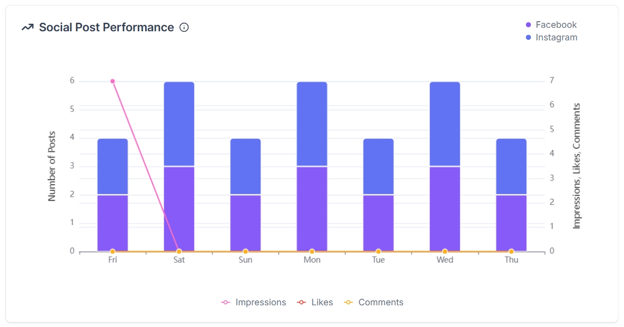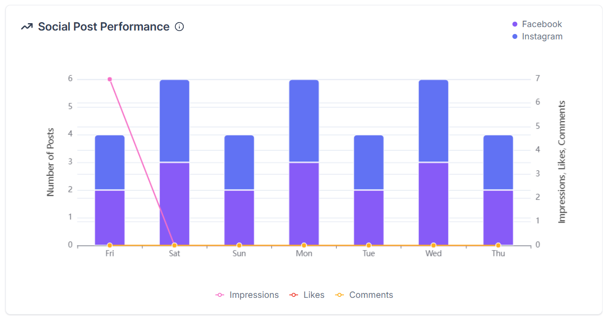 Social Post Performance: This graph displays the interactions your posts receive in relation to the number of posts published that day.