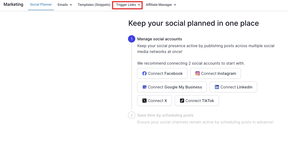 Navigate to the "Marketing" section of your CRM and select "Trigger Links."