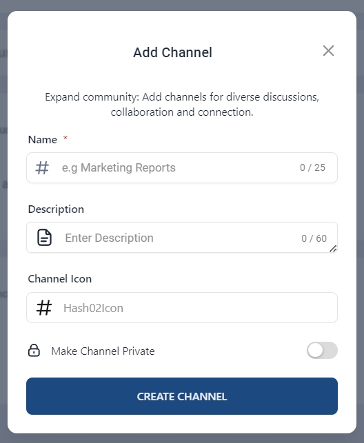 A modal window will appear, prompting you to provide specific details for the channel creation.