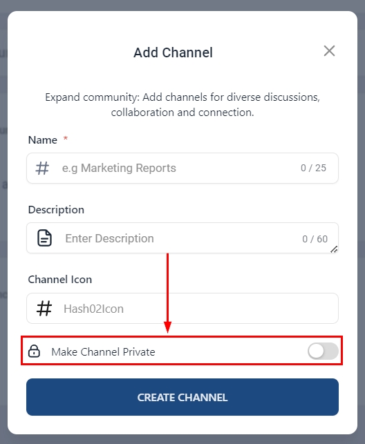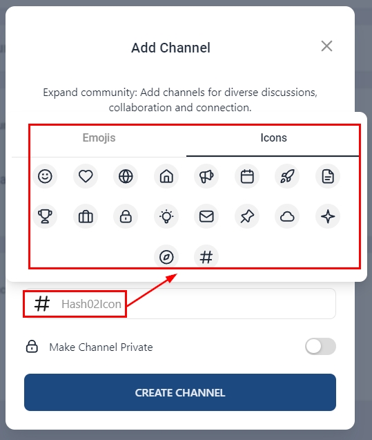 Choose a distinct icon for the channel. This icon will be displayed next to your channel name, offering members a visual cue that helps them identify your channel quickly.